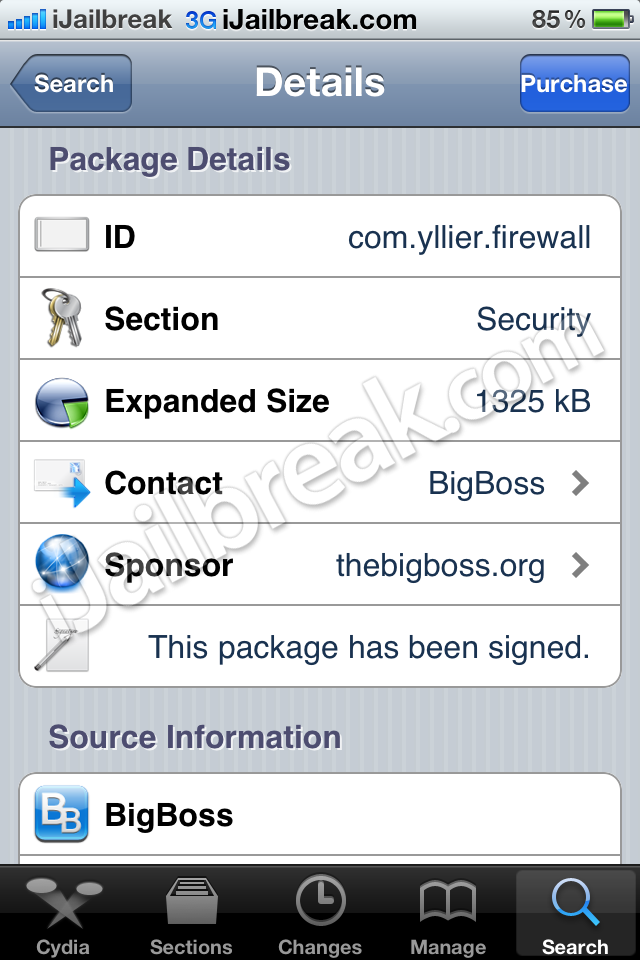 Το τείχος προστασίας IP είναι διαθέσιμο στο cydia Store μέσω BigBoss